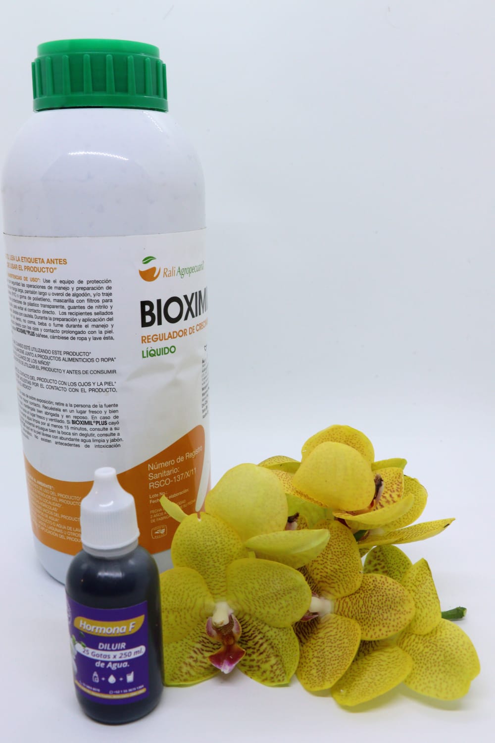 Se disuelve 20 gotas en 250 ml de agua , se aspeja 2 veces a la semana, hasta por 3 meses, con cuidado de secar el frente de crecimiento (corona) para evitar pudrición de tallo.