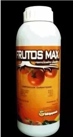 Frutos Max: Es un fertilizante foliar con alto contenido en fosforo y potasio complementado con boro y calcio proporcionando multiples beneficios en el desarrollo y rendimiento de las plantas.