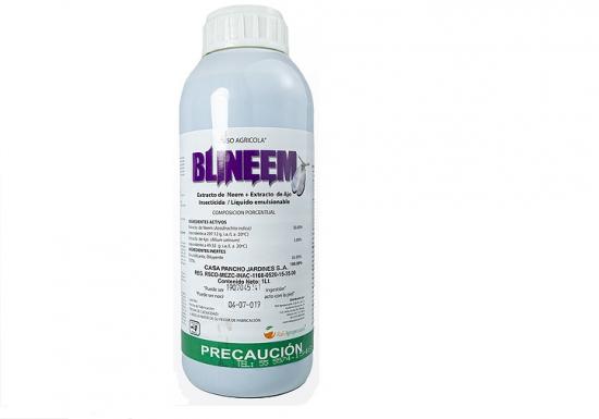 Blineem es un insecticida organico, con efecto preventivo y curativo, desarrollado a base de Extracto de Neem y Extracto de Ajo, es biodegradable y no toxico.